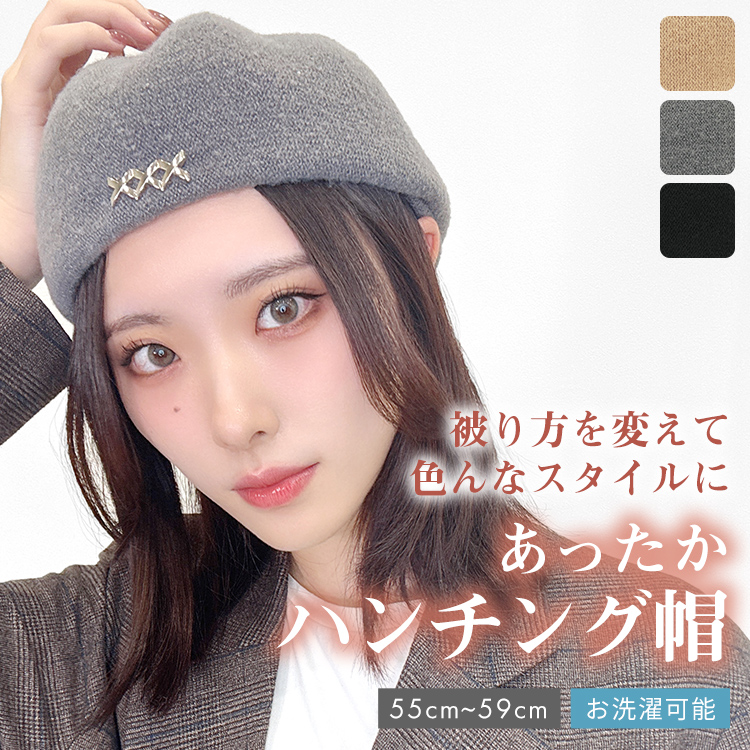 帽子 ハット ハンチング帽 ぼうし レディース 女性 かわいい 可愛い 秋 冬 防寒 カジュアル ベージュ グレー ブラック 白 灰 黒 ウィッグ