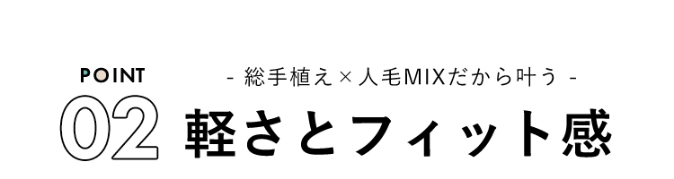 総手植えは前髪の上の部分に丸みを作らずスリムな仕上げにしています。 厚みがない分、より自毛にフィット!