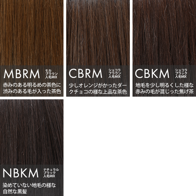 MBRM.モカブラウン 人毛ミックス CBRM.ショコラブラウン 人毛ミックス CBKM.ショコラブラック 人毛ミックス NBKM.ナチュラルブラック 人毛ミックス