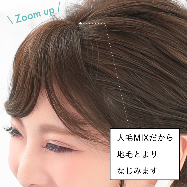 ゆるカールサイド付流し前髪ウィッグ 人毛ミックス |