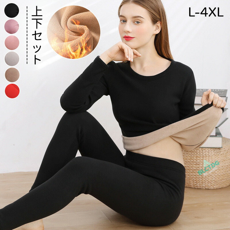 シルクインナー 上下セット 裏起毛 暖かい インナーウエア レディース 長袖 長ズボン下 肌着 厚み クールネック 部屋着 パジャマ 保湿 敏感肌 乾燥肌 肌荒れ 美肌 温活 吸汗速乾 防臭 温活 防寒保温 静電気防止 汗取り 無地