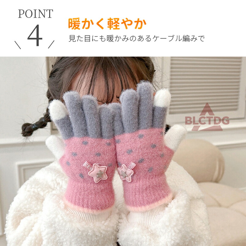 手袋 キッズ ジュニア 女の子 男の子 スマホ対応 スマホ タッチグローブ 裏起毛 五本指 可愛い ふわふわ ふわもこ ニットのびのび 保温 防寒 普段使い スポーツ スキー スノボ