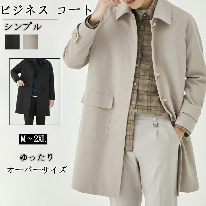 ステンカラーコート メンズ ビジネス コート スプリングコート オーバーサイズ ビッグシルエット 薄手 ゆったり ロングコート アウター 仕事 カジュアル