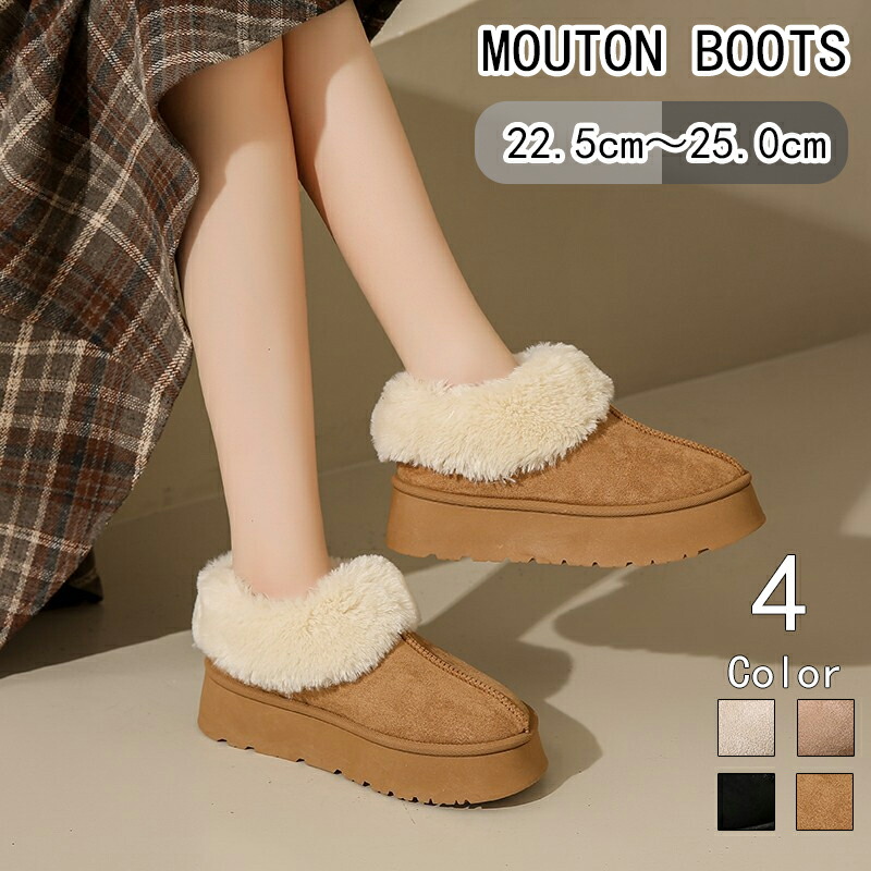 ムートンブーツ レディース ムートンシューズ 厚底 4cmヒール スリッポン フ ルームシューズ フェイクファー もこもこ 厚底靴 裏ボア 裏起毛 厚手 防寒対策 保温 あったか 歩きやすい 柔らかい 疲れない おしゃれ 秋冬 アウトドア 室内 室外 女性 大人