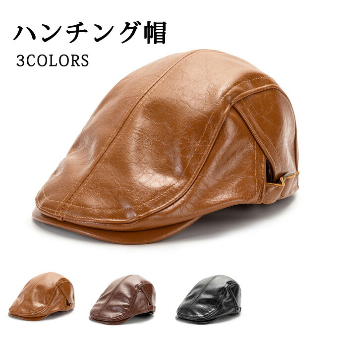 ハンチング帽子 メンズ フェイクレザー ぼうし レザー アウトドア ハンチング帽 レトロ 通気 耐寒 カジュアル おしゃれ ファッション 春 秋 冬 サイズ調節 大きいサイズ プレゼント ギフト 送料無料