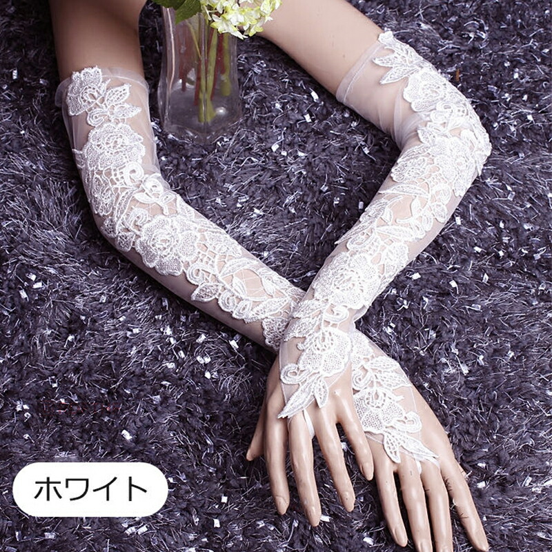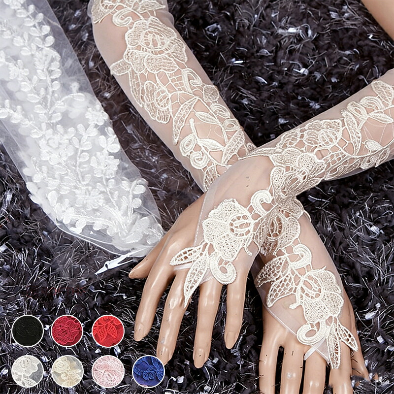 ウエディンググローブ ウェディンググローブ ロンググローブ 手袋 ウェディング ブライダル 結婚式 花嫁 二次会 パーティー レース 花模様 カラードレス 白 オフホワイト ブラック 黒 赤 レッド ワインレッド ピンク ブルー ベージュ シャンパンフィンガーレス