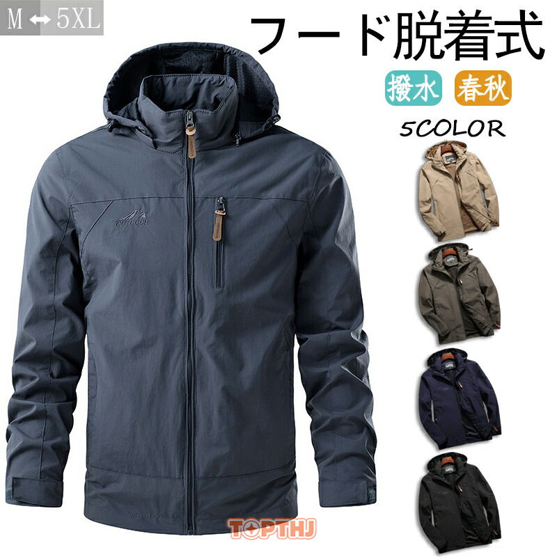 マウンテンパーカー メンズ 胸ポケット 撥水 ジャケット フード脱着可 ブルゾン 大きいサイズ アウトドアウエア 春 春服 秋 秋服 ウインドブレーカー