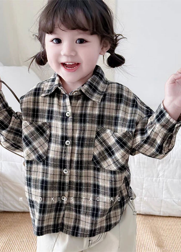 チェックシャツ 男の子 長袖 キッズ ワイシャツ アウター 春秋 カジュアル フォーマル 入学式 入園式 通学 前開き おしゃれ ボタンシャツ 2色 80cm~130cm