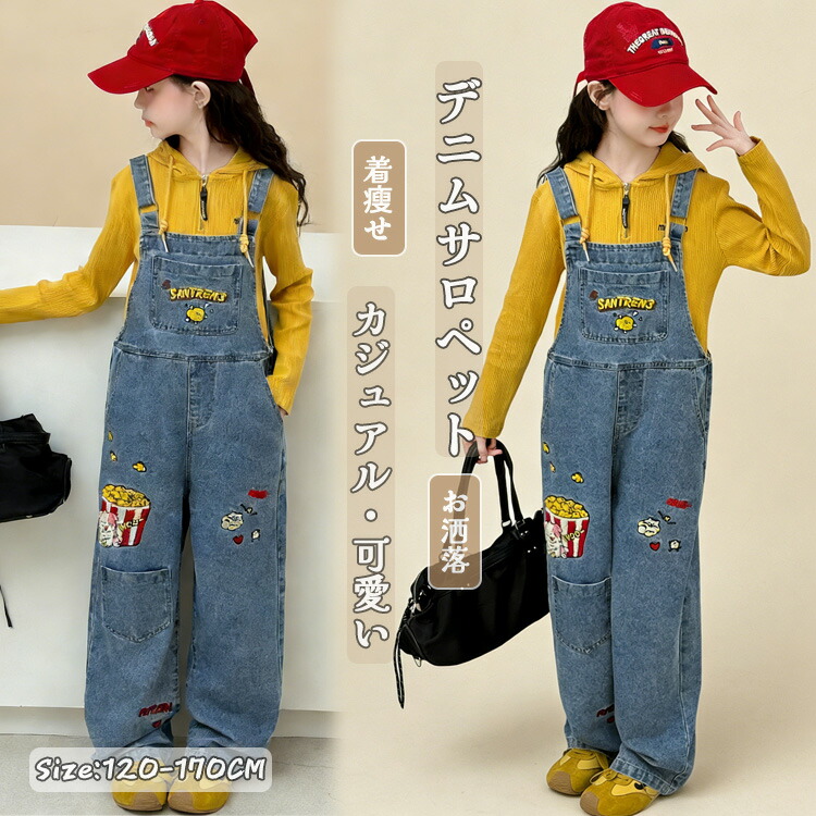 サロペットパンツ キッズ デニムサロペット 女の子 ロングパンツ 春服 子供 夏 デニムパンツ ワイドパンツ デニム ボトムス 長ズボン オールシーズン