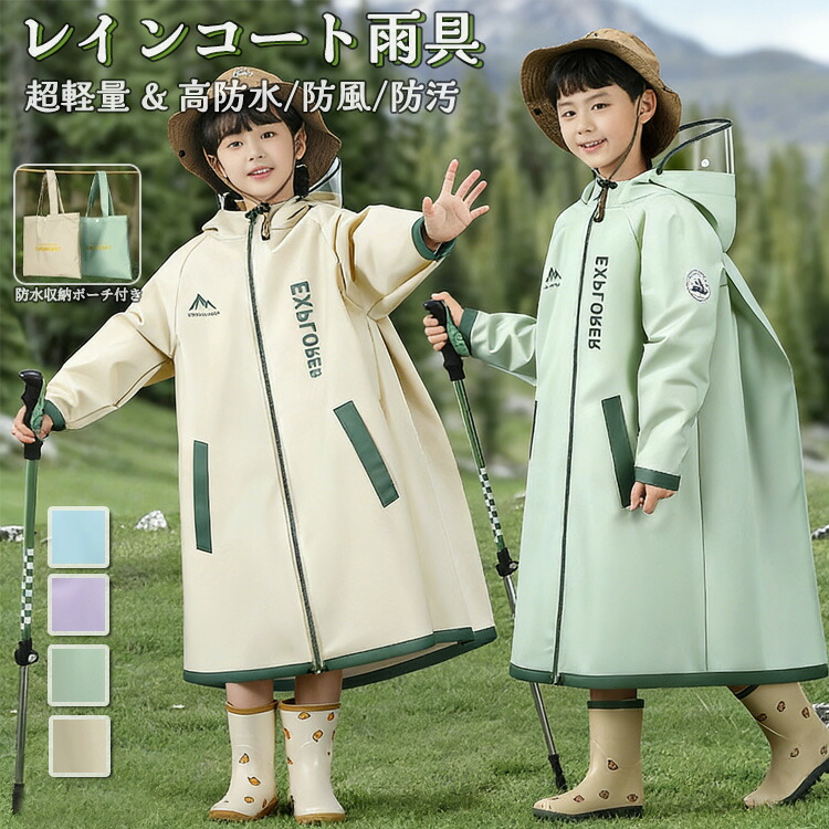 収納袋付きレインコート キッズ ランドセル対応 ランドセル 女の子 男の子 自転車 通学 子供 防水 撥水 おしゃれ かわいい カッパ 雨具 幼稚園 小学生 高学年 キッズレインコート レインコートランドセル対応 レインウェア 雨具 梅雨対策
