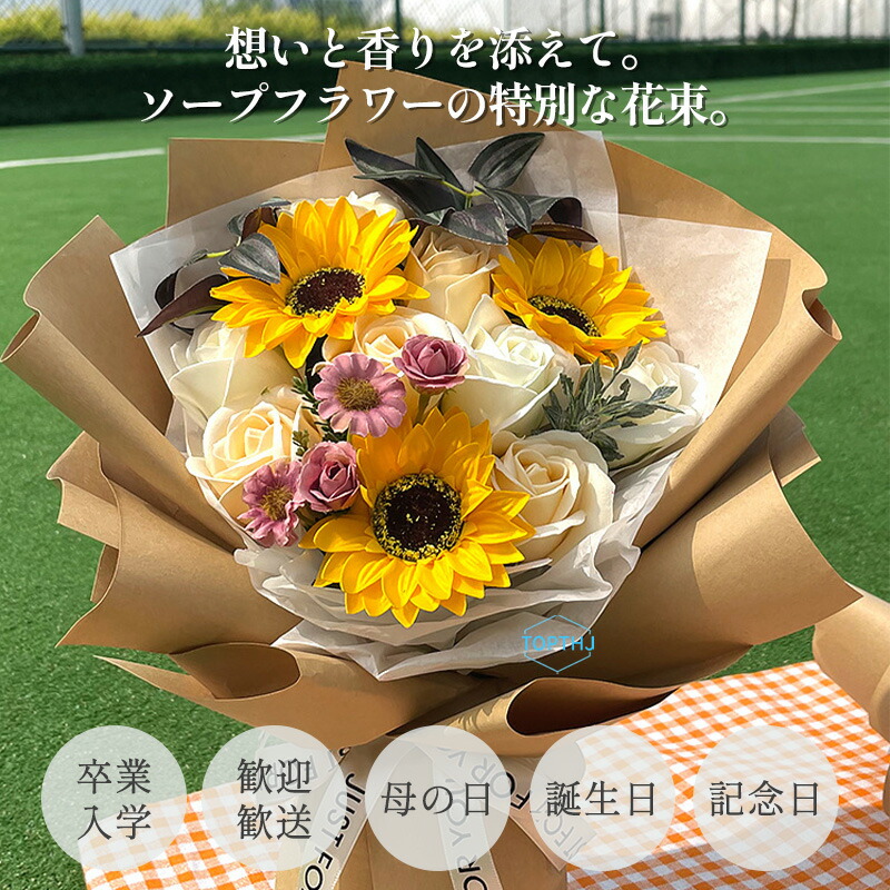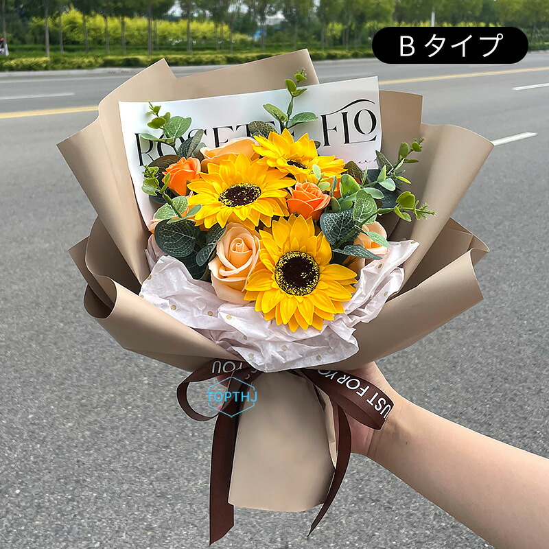 ソープフラワー 花束 成人式 ブーケ プレゼント ギフト ひまわり ヒマワリ フラワーソープ アレンジメント 造花 バレンタインデー 結婚記念日 誕生日プレゼント