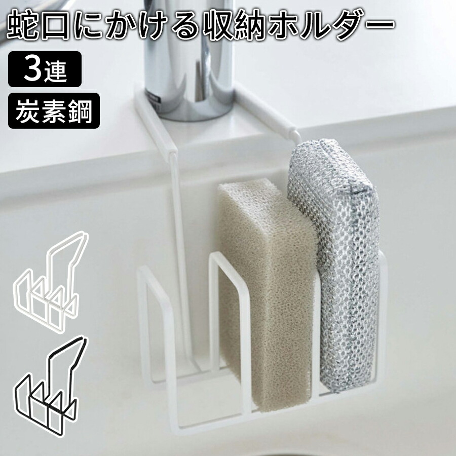 スポンジラック スリーレイヤー スポンジ置き 蛇口にかけるスポンジホルダー キッチン収納 シンク周り シリコン お手入れ簡単 ホワイト ブラック