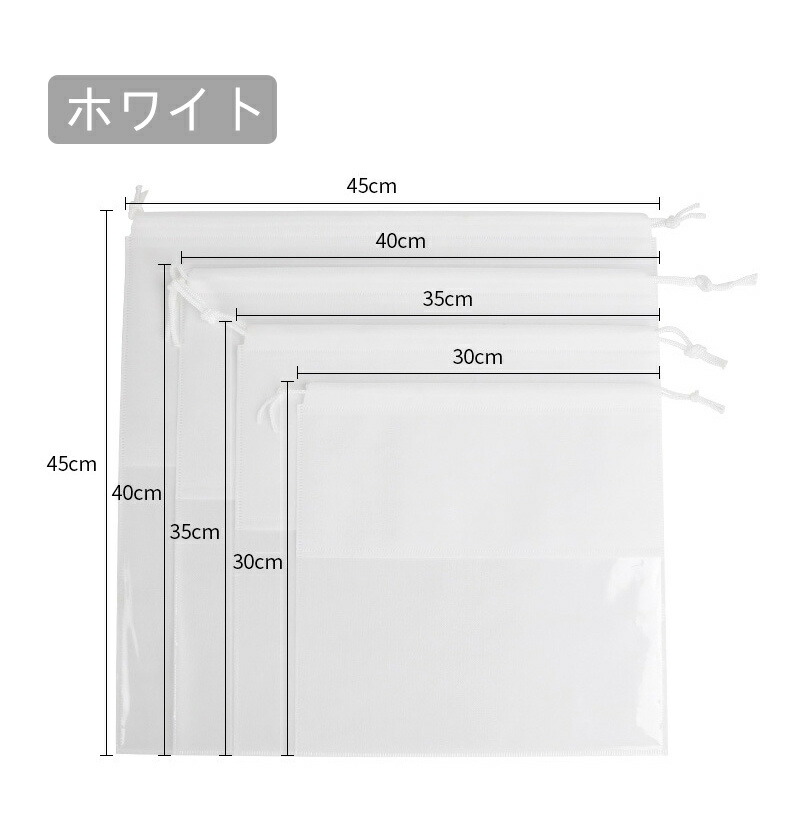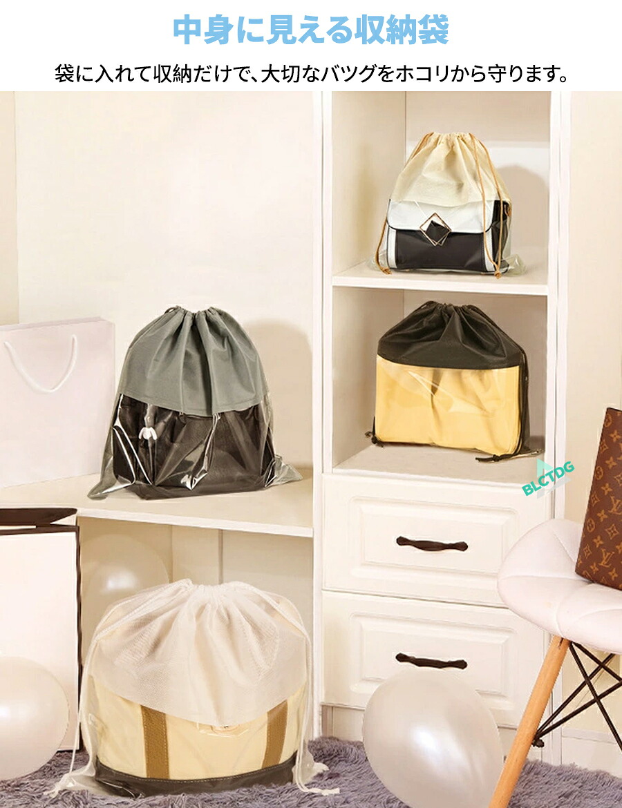 巾着袋タイプの為ヒモで閉めた後は持ち運びとしても利用 バッグ収納袋 透明窓 5枚セット バッグ保存袋 不織布 カバン保管袋 中身に見える 巾着袋 鞄保管用 バッグ収納 防塵カバー