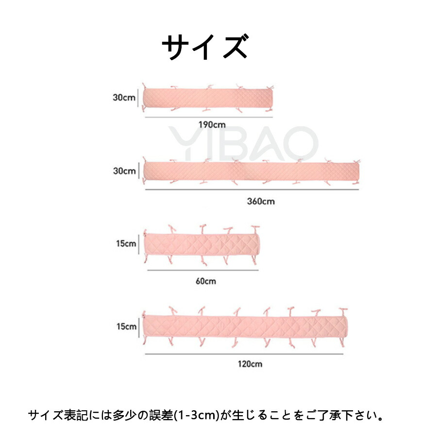 ベビーベッドガード 30cmx190cm/30cmx360cm /15cmx120cm/15cmx60cm サイドガード 綿 ベビーベッド用 四方タイプ ごっつん防止 ベッドバンパー ベビーベッド 小物