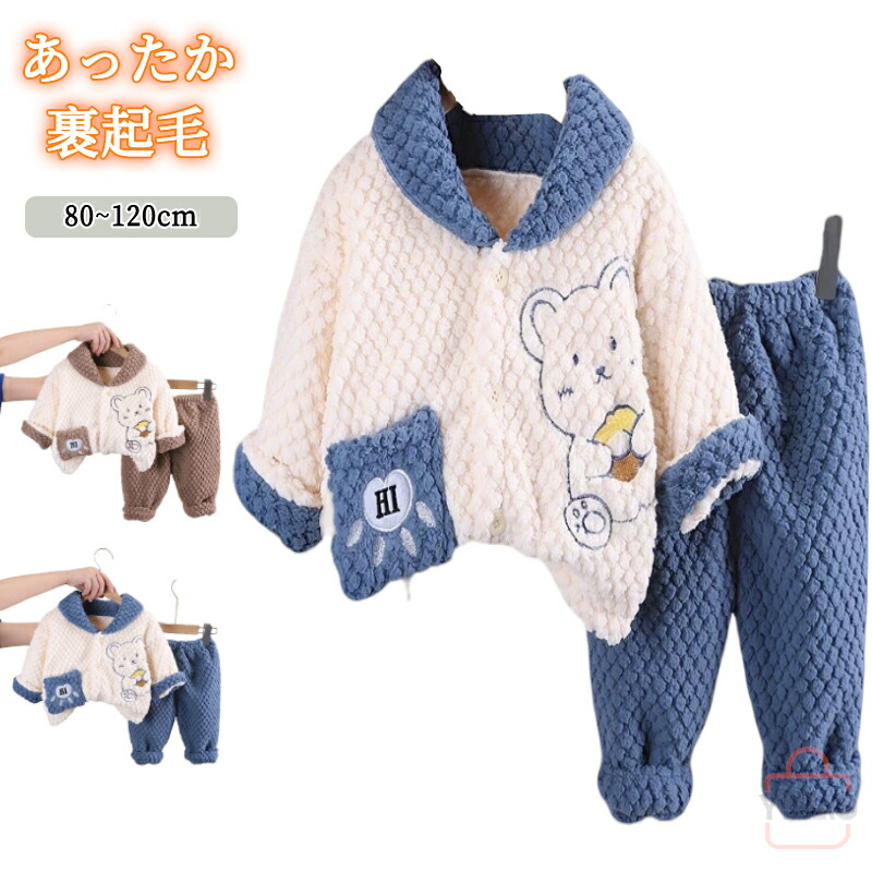 子供用もこもこルームウエアセットアップ 秋冬対応 裏起毛で暖かく快適 男女兼用 で可愛いパジャマとして最適なキッズ服