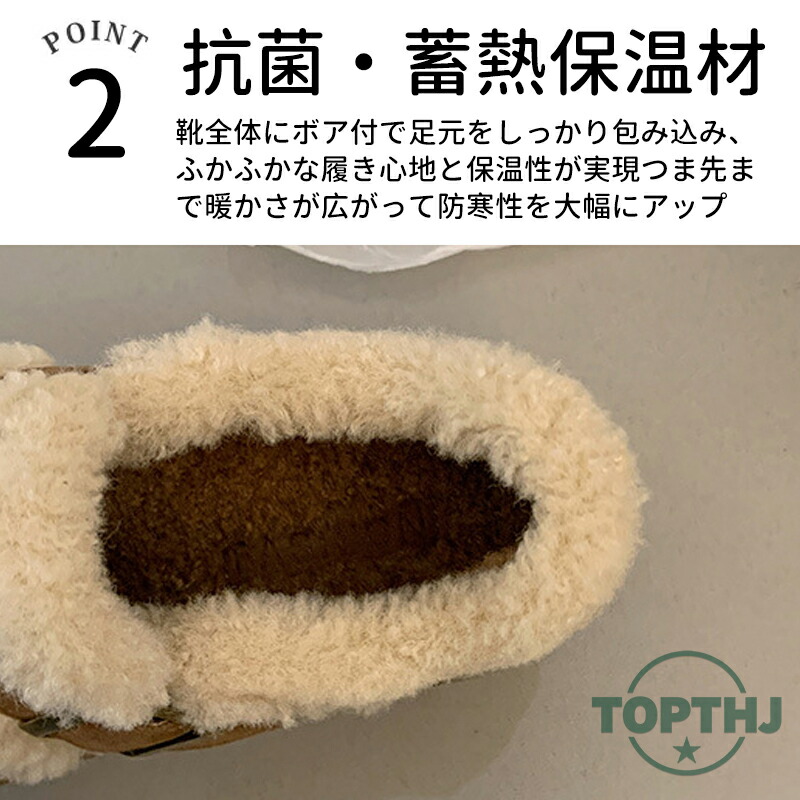 足を入れた瞬間から暖かさを実感できるボアをつま先まで全面に施し防寒性が格段にアップ。