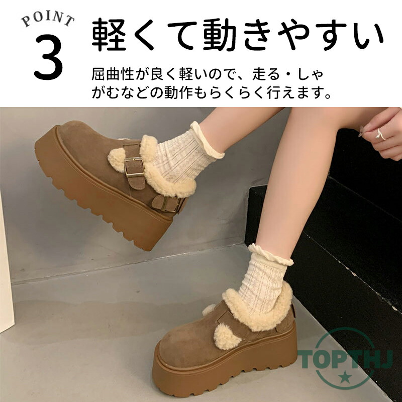 厚底で安定感抜群、歩きやすいのが嬉しいポイントで、雪道対応ソールのウインター機能を兼ね備えたショートブーツ足をもっと全面的に寒さから守れます。