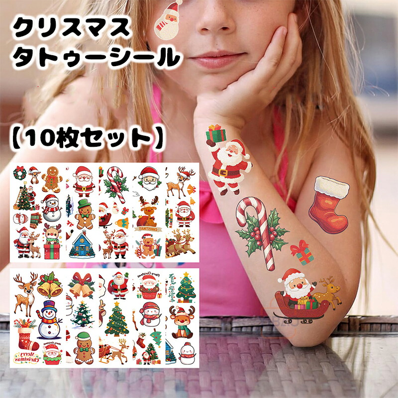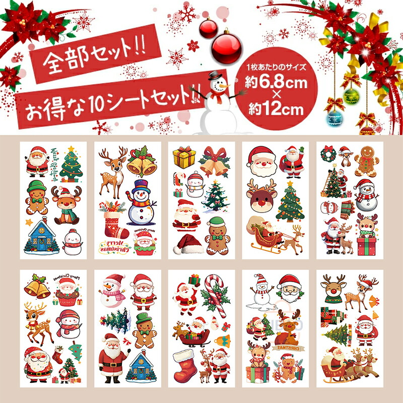 ステッカー クリスマス タトゥーシール サンタステッカー 10枚セット ステッカー 大人 かわいい ボディーシール フェイス シール 仮装 顔 サンタクロース