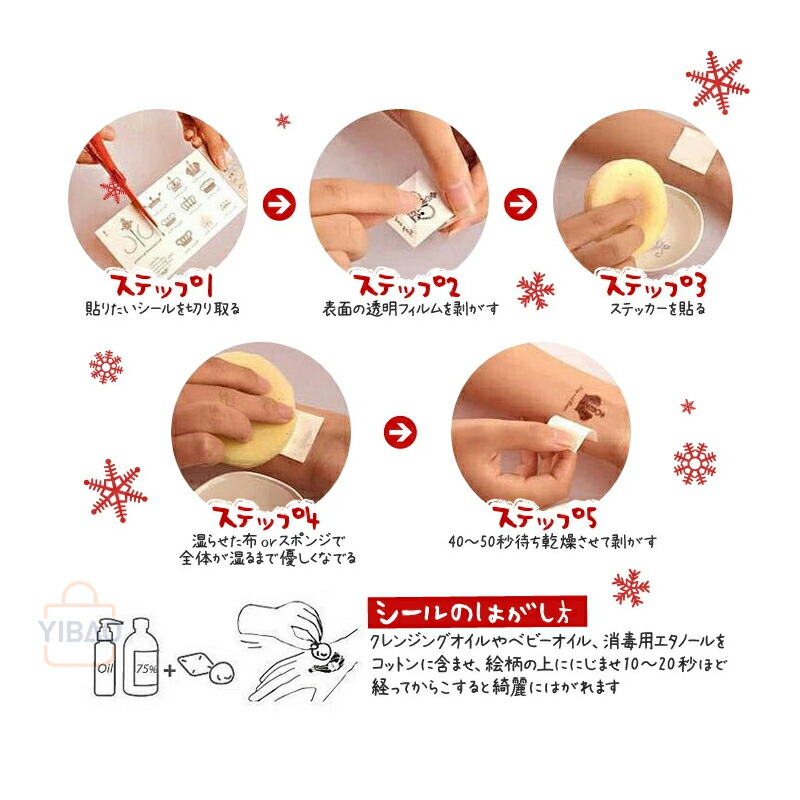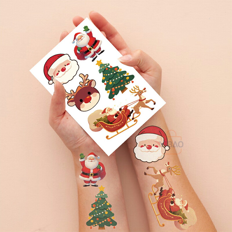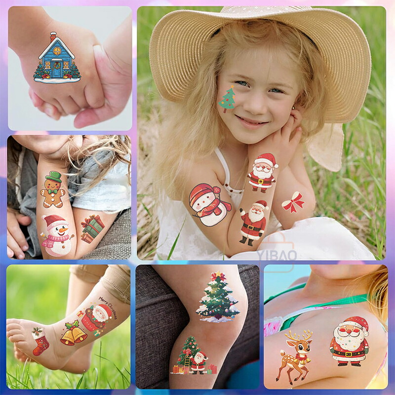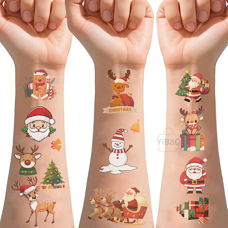 高品質の素材:クリスマスの一時的な入れ墨は安全なインクと接着剤で作られており、防水です。必要なときはクレンジングで簡単に拭き取ることができます。