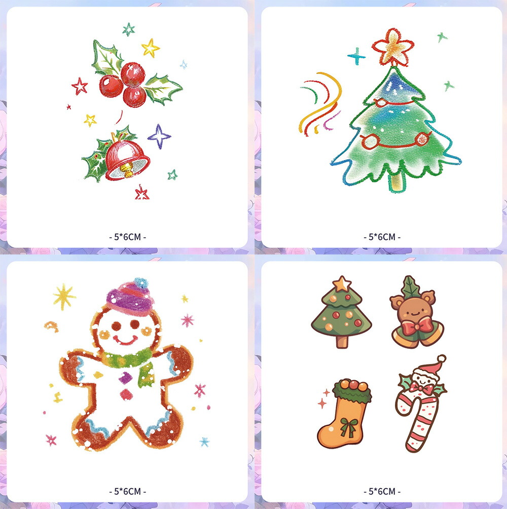 タトゥーシール クリスマス サンタクロース シール 可愛い 仮装 コスチューム 雪だるま クリスマスツリー サンタステッカー 刺青シール ボディーシール 仮装小道具