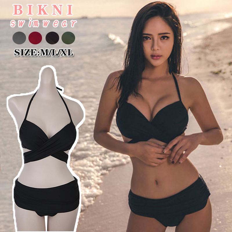 水着 レディース ビキニ 2点セット 水着 体型カバー ノンワイヤー リボン ホルターネック セパレート 海水浴 温泉 ビーチ 大人 おしゃれ