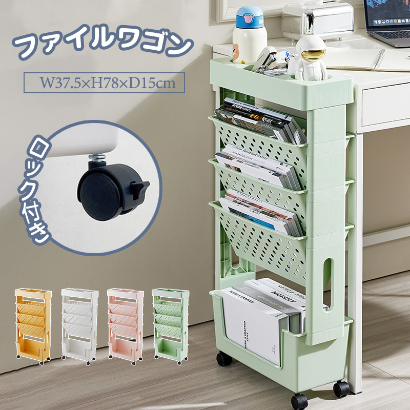 マガジンラック スリム ファイルワゴン 薄型 回転 キャスター付き おしゃれ 北欧 コンパクト 大容量 サイドワゴン デスクワゴン 子供部屋 オフィス 教科書収納