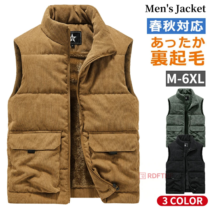 ベスト コーデュロイ ベスト メンズ 裏起毛 カジュアル ベスト ノースリーブ ジャケット 暖かいベスト 裏ボアベスト ゴルフ 散歩 旅行 秋冬 ダウンベスト 厚手