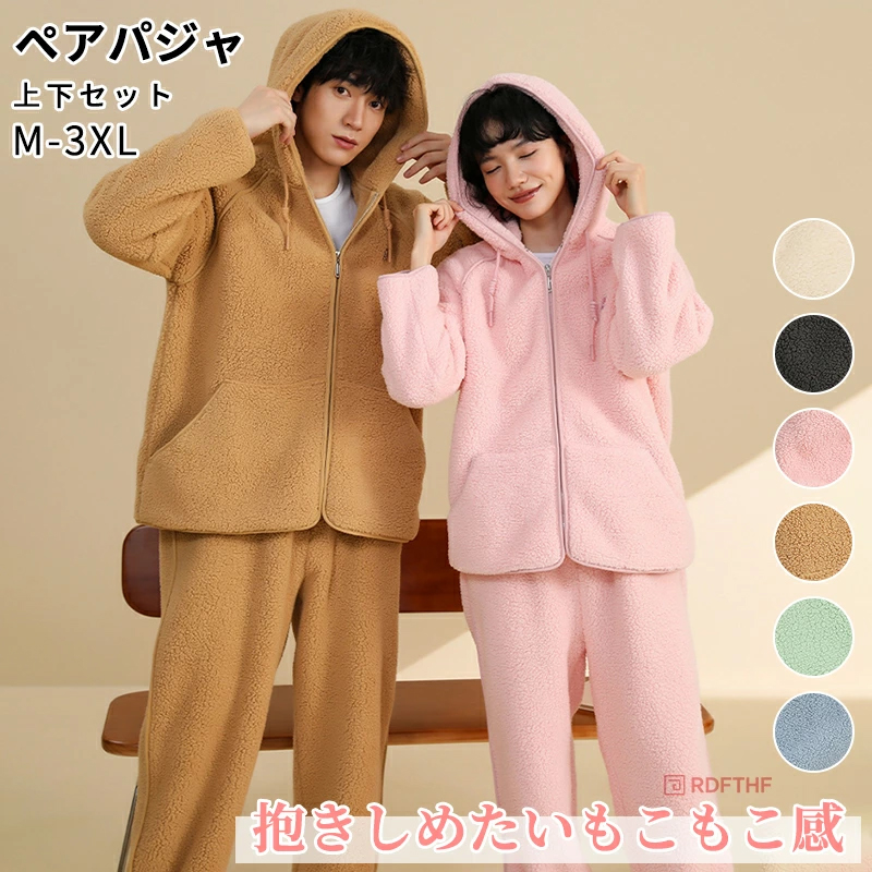 ■商品名:着る毛布 パジャマ 送料無料 ルームウェア レディース 冬 暖かい ナイトウェア 上下セット 長袖 もこもこ 秋冬 大きいサイズ ハイネック 裏起毛 前開き ストレート 秋 ギフト プレゼント 冬物 入院 ふわふわ クリスマス カップルズウェア