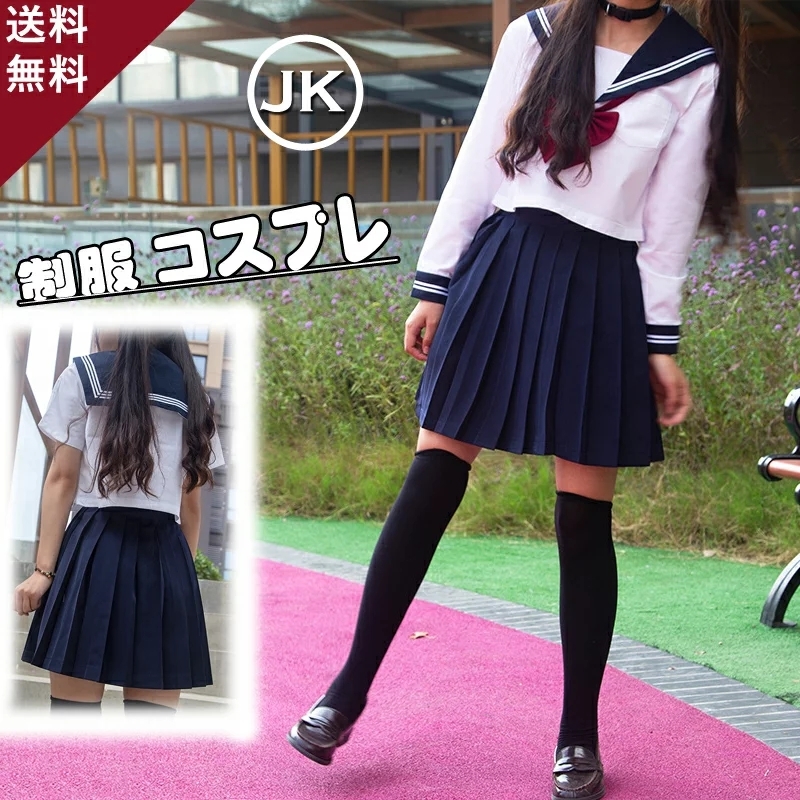 セーラー服 コスプレ 本格 白色 5サイズ 制服 学生服 JK 女子高生 赤いリボン 二本線 大きいサイズ