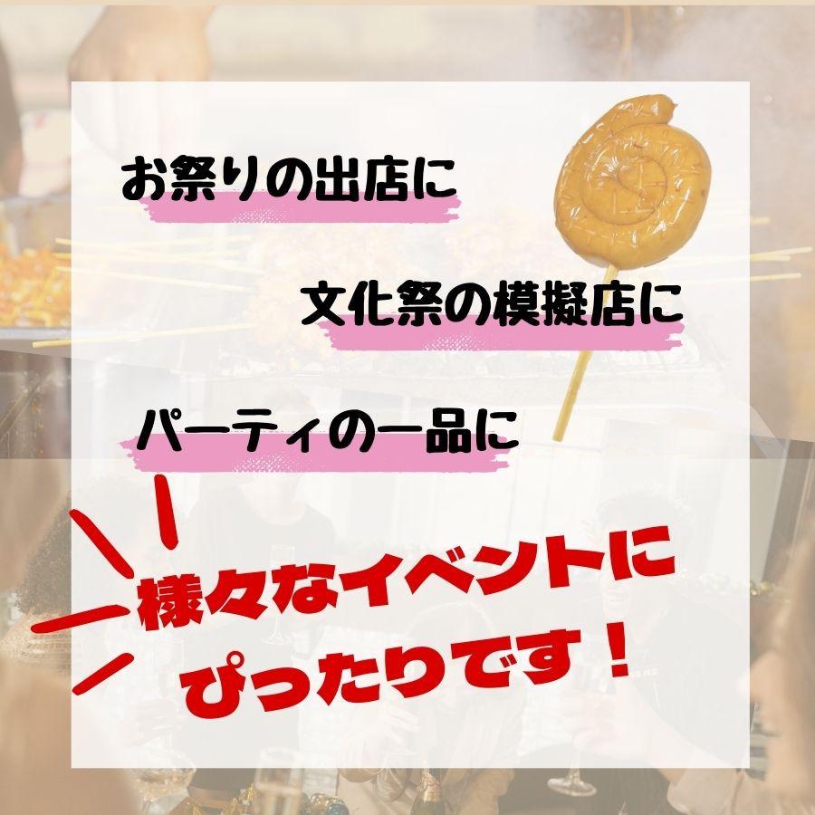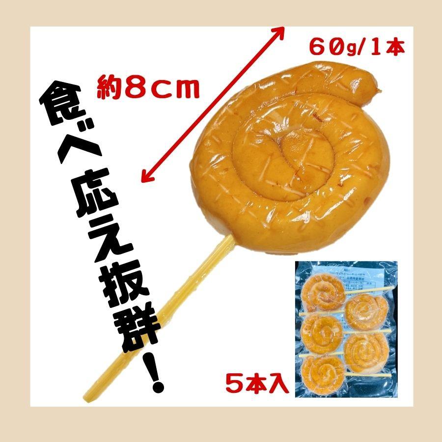 串付きぐるぐるウィンナーは見た目が可愛くインスタ栄えするソーセージです。大きさはは約8cm、60g/串です。1PCは5本入です(合計300g)ビールのおつまみにピッタリです。また、バーベキューやキャンプ、パーティー、女子会、誕生日会、年末年始で大活躍です。ワンハンド商品なので屋台、キッチンカー、学園祭などでも大人気の商品です。調理方法は電子レンジ、お湯ポチャ、フライパンで焼くからお選びください。