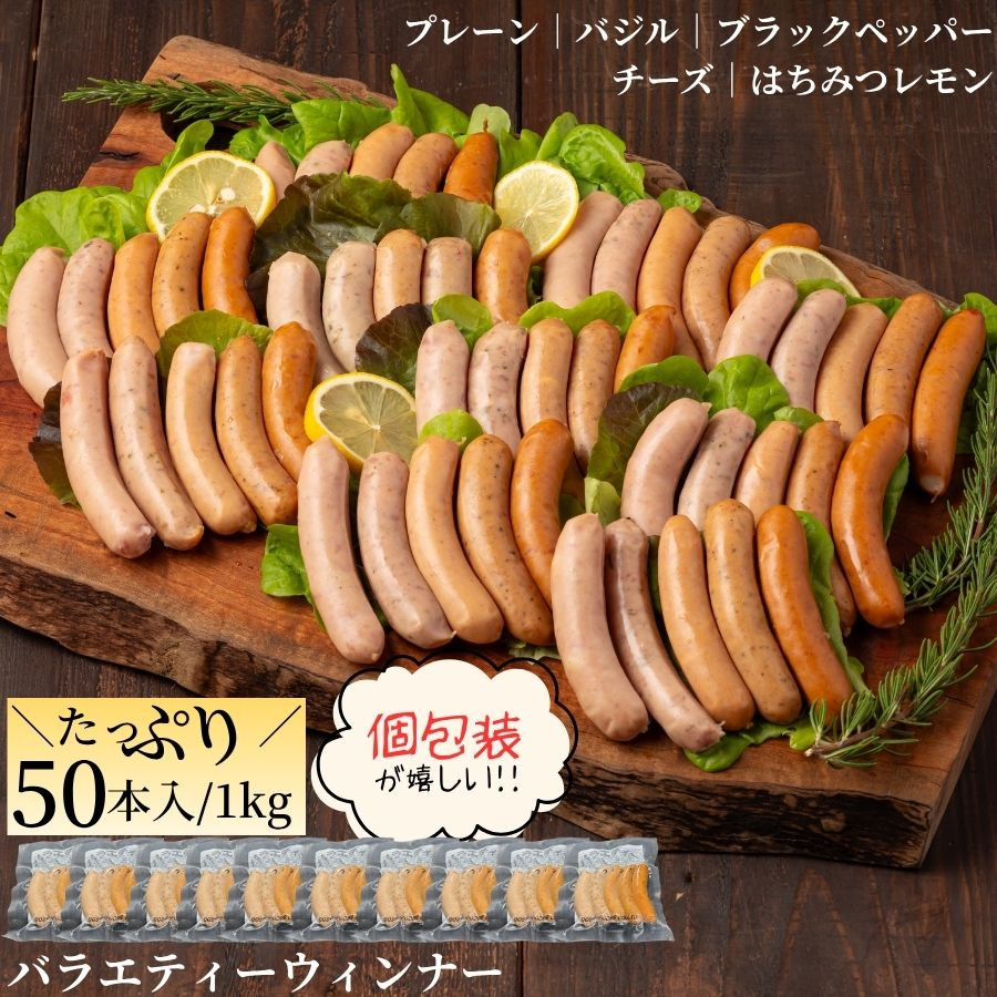 バラエティウィンナー ソーセージ 1kg 50本 大容量 洋風惣菜 焼くだけ バーベキュー キャンプ お弁当 おつまみ
