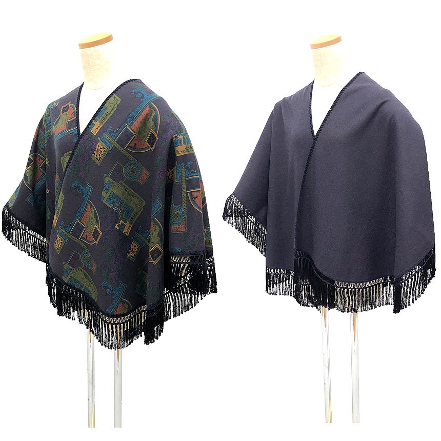 京やR166 和装洋装兼用 大判ショール 着物用ストール レーヨンフリンジ付き マントコート ショール リバーシブル 秋冬