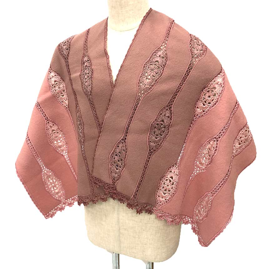 フェルトウールにコットンレーヨンのレースの編みこみが大変美しい一枚です。