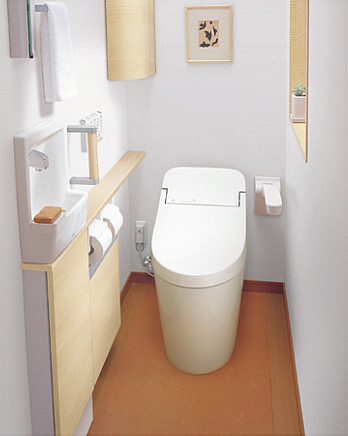トイレ空間にスッキリと収まるコンパクトでスリムな手洗器