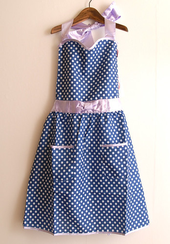 婦人子供服 女の子 割ぽう着 みずたま サックス ネイビー