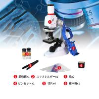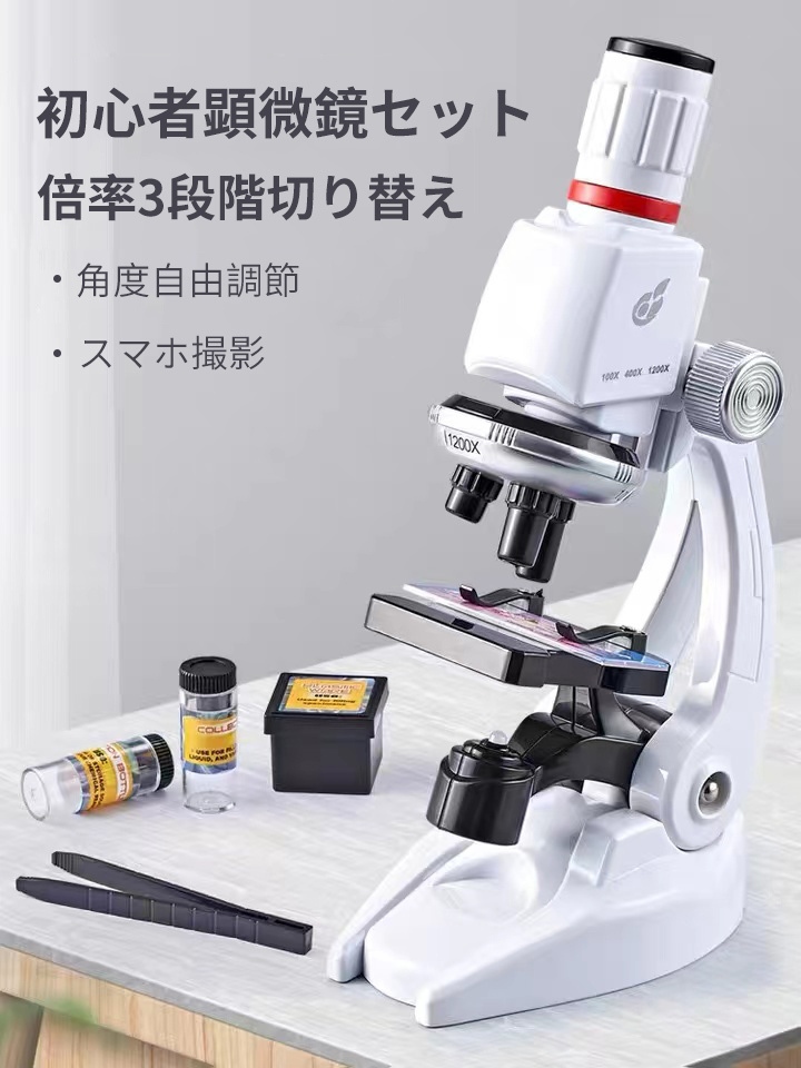 顕微鏡 最大1200倍 子供 学生 大人 初心者 学習用 生物標本 実体 花粉 宝石 自由研究用 生物学教育 学習研究 スマホホルダー付き 細胞撮影