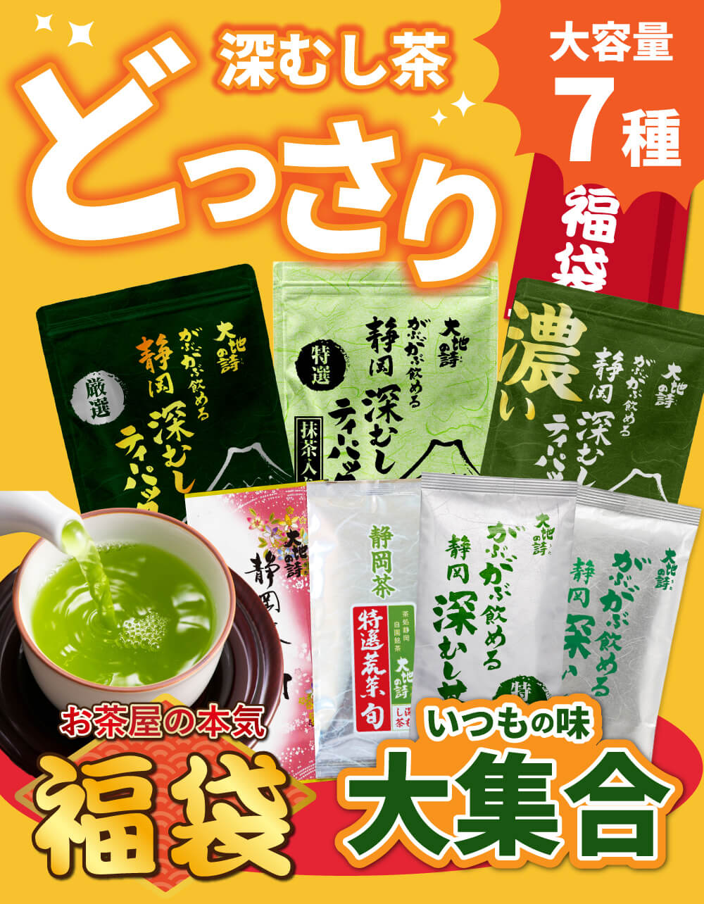 福袋 2026 食品 お茶 緑茶 ティーバッグ ティーパック 茶葉 深蒸し茶 お茶の葉 静岡茶 大入り福袋7種 ポイント利用 ポイント消化 爆買