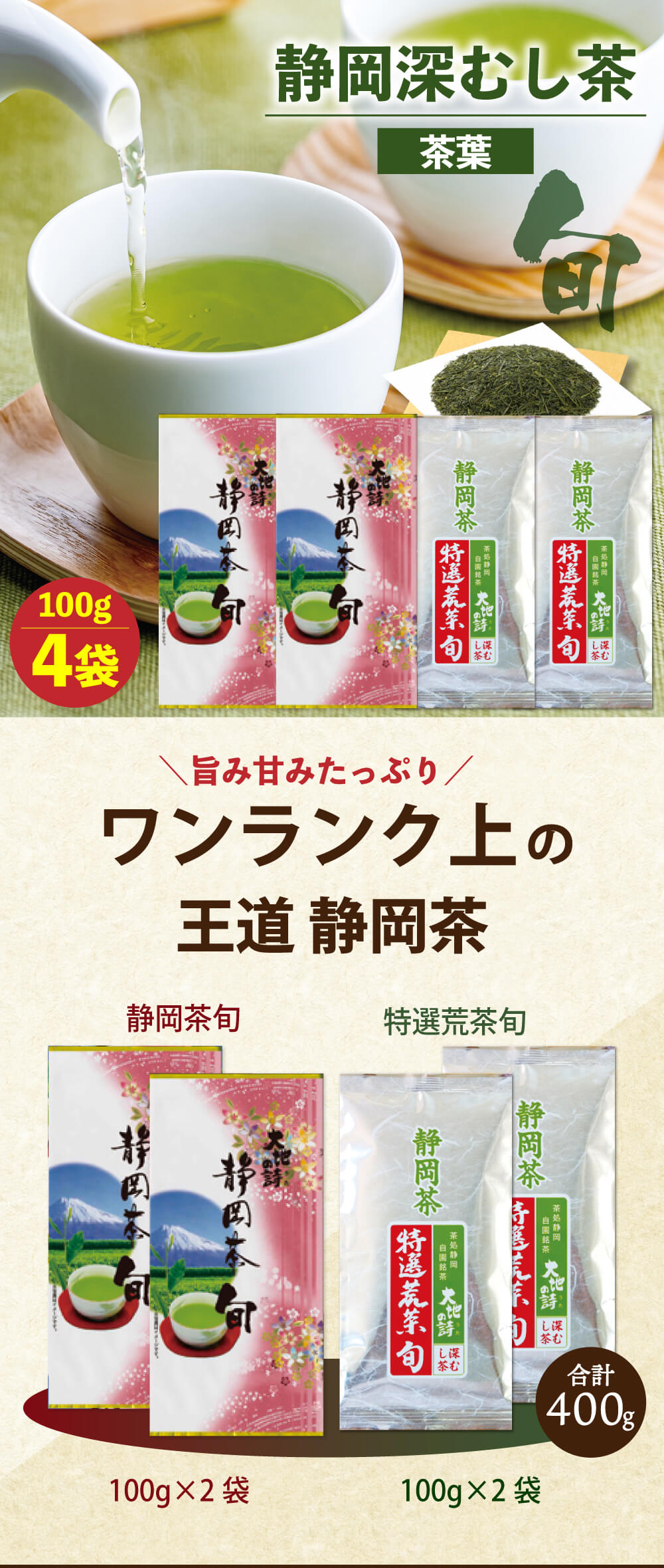 お茶 緑茶 茶葉 深蒸し茶 日本茶 お茶の葉 静岡茶 国産 徳用 お得 静岡茶旬2袋&特選荒茶旬2袋 送料無料 ポイント利用 ポイント消化 爆買