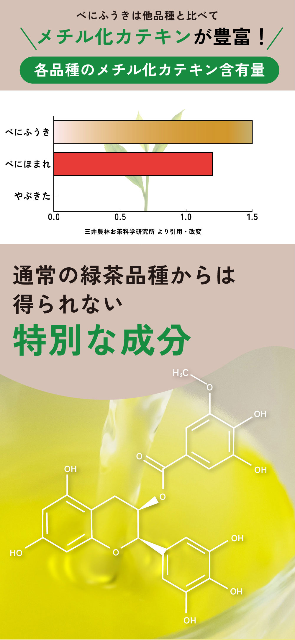 「べにふうき」には「メチル化カテキン」が豊富に含まれています。