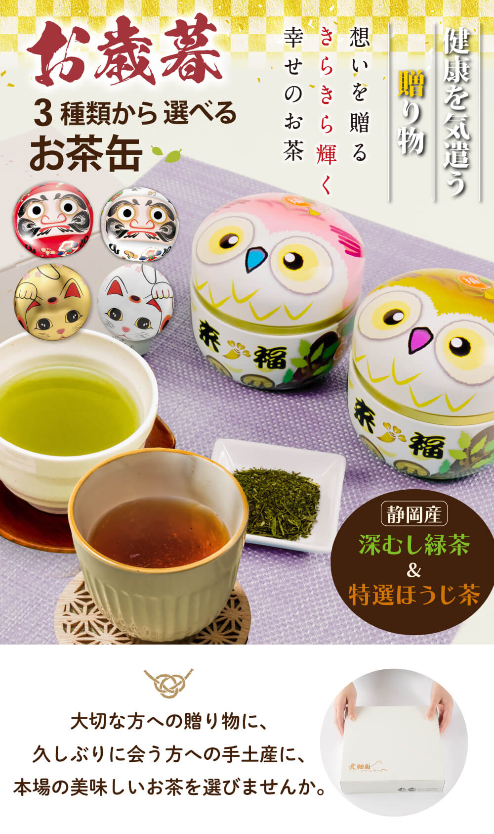 お歳暮 2025 ギフト プレゼント お茶 緑茶 ほうじ茶 茶葉 深蒸し茶 お茶の葉 健康 おしゃれ缶 かわいい 選べるお茶缶2本箱入 ポイント利用 爆買