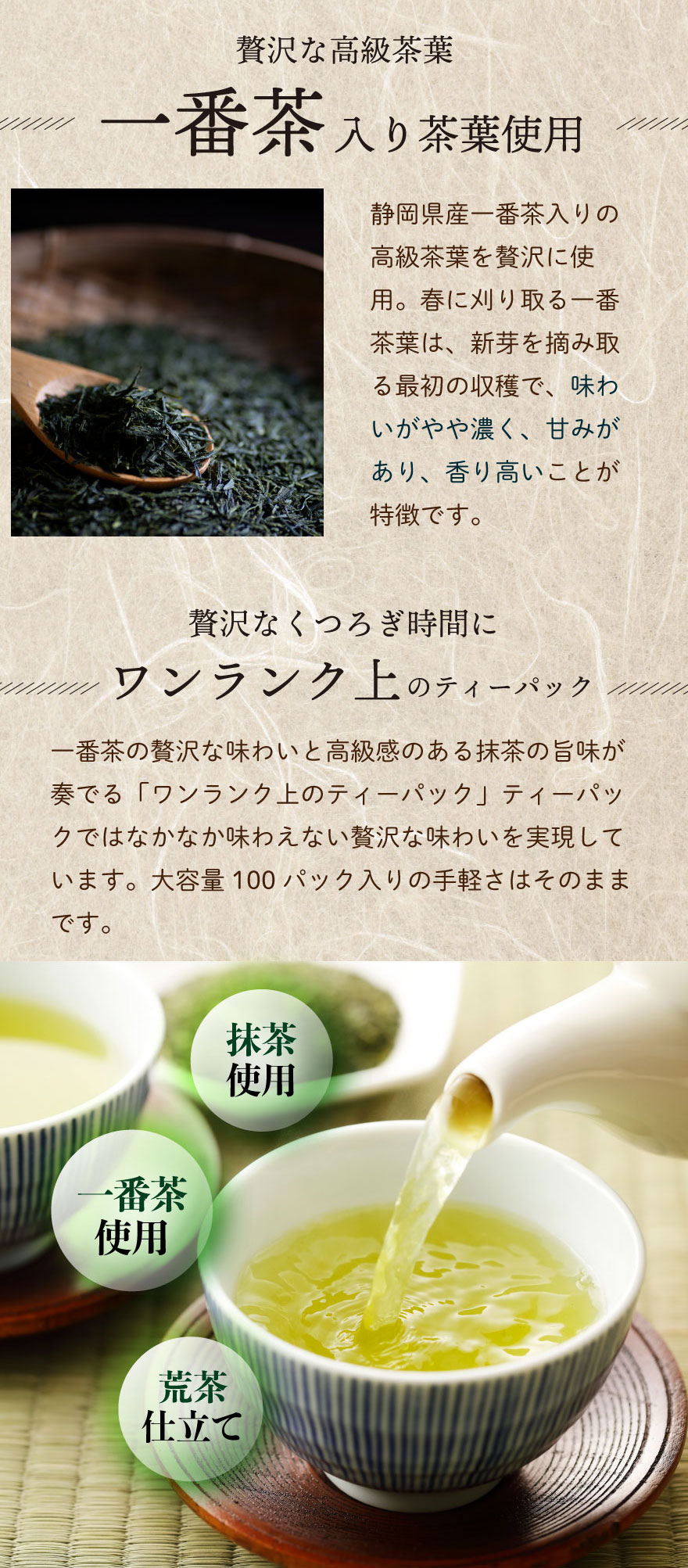 一番茶&抹茶を使用し、より味わい深くなりました。