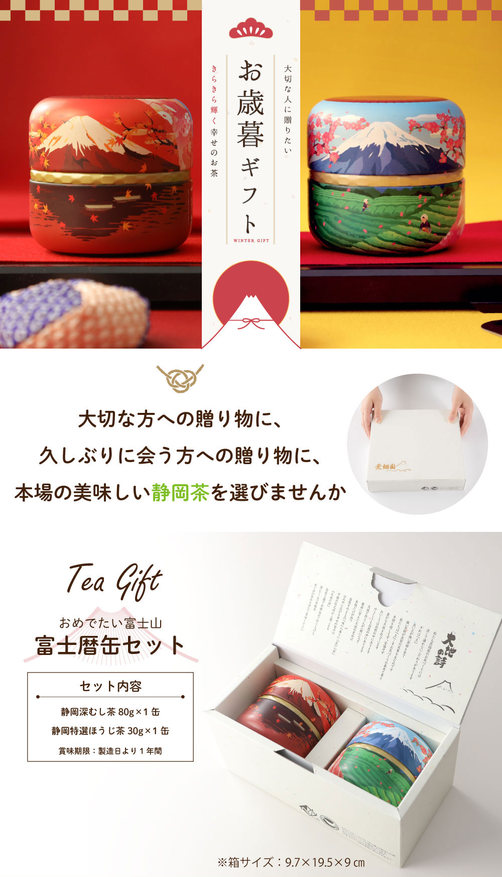 お歳暮 2025 ギフト プレゼント お茶 緑茶 ほうじ茶 茶葉 深蒸し茶 お茶の葉 静岡茶 富士暦缶2本箱入 ポイント利用 ポイント消化 爆買 ■30497