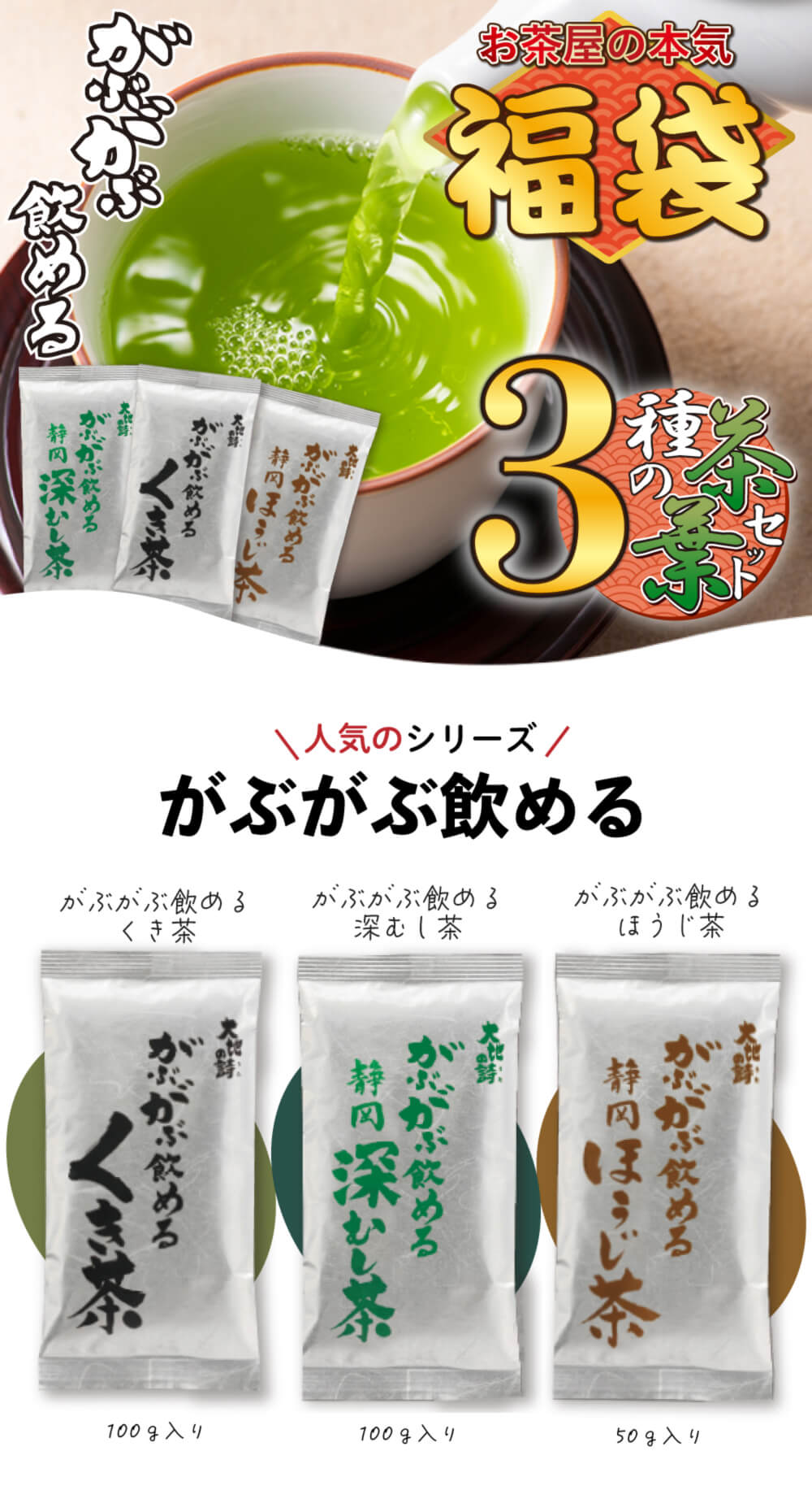 静岡発!お茶屋の本気!大人気のがぶ飲みシリーズの茶葉を詰め合わせた人気福袋!