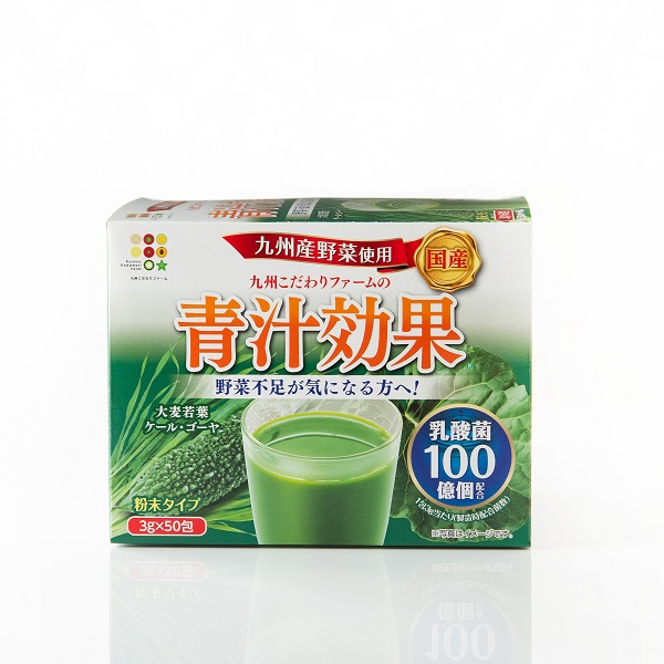 温暖な気候と良質な土壌で育った九州産野菜3種(大麦若葉、ケール、ゴーヤ)に乳酸菌100億個を配合した素材のおいしさを栄養価を活かした青汁です。