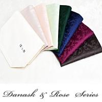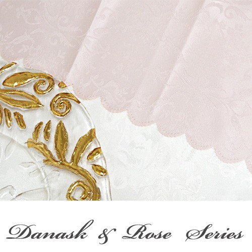 両面光沢のある生地に上品なダマスク・ローズ模様が素敵なテーブルクロス。