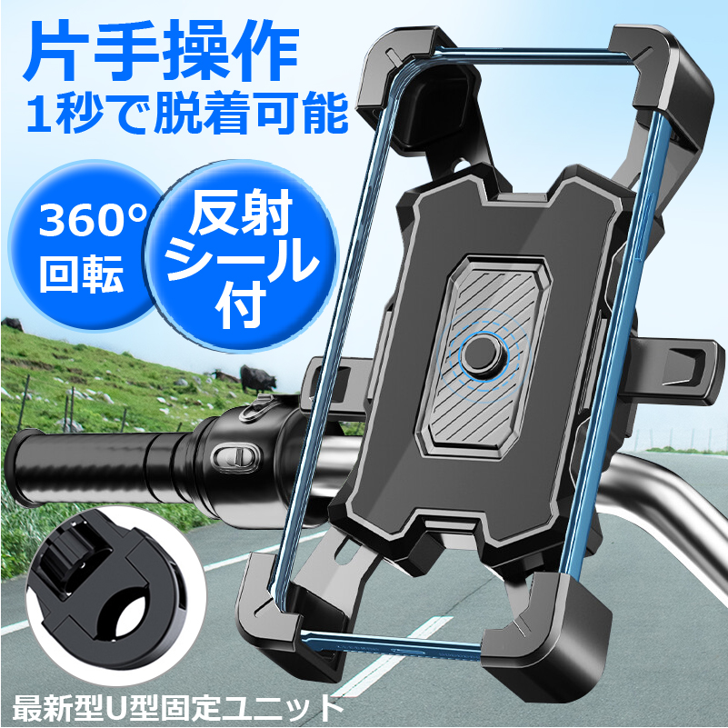 自転車 スマホホルダー バイク スマホスタンド 携帯ホルダー 反射材付き 自動ロック サイクリング 360度回転 ロードバイク ホルダー FIPRIN 7162 iphone 16