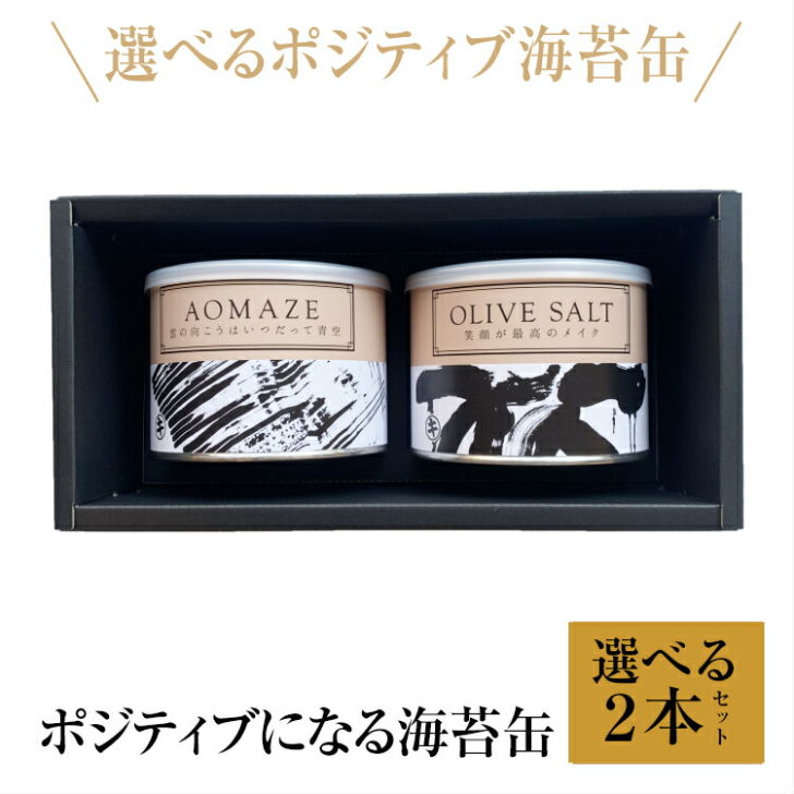 海苔 のり ポジティブになる海苔缶 選べる2缶箱入りギフト オリーブソルト 青混のり 味付のり(出しじょう油) 梅味 めんたいこ味