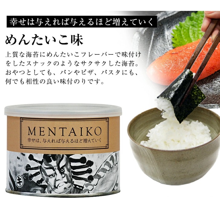 内 容 量 2缶/焼きのり・青混ぜのり・だし醤油味・めんたいこ味・梅味・オリーブソルト味 8切40枚(全形5枚分)