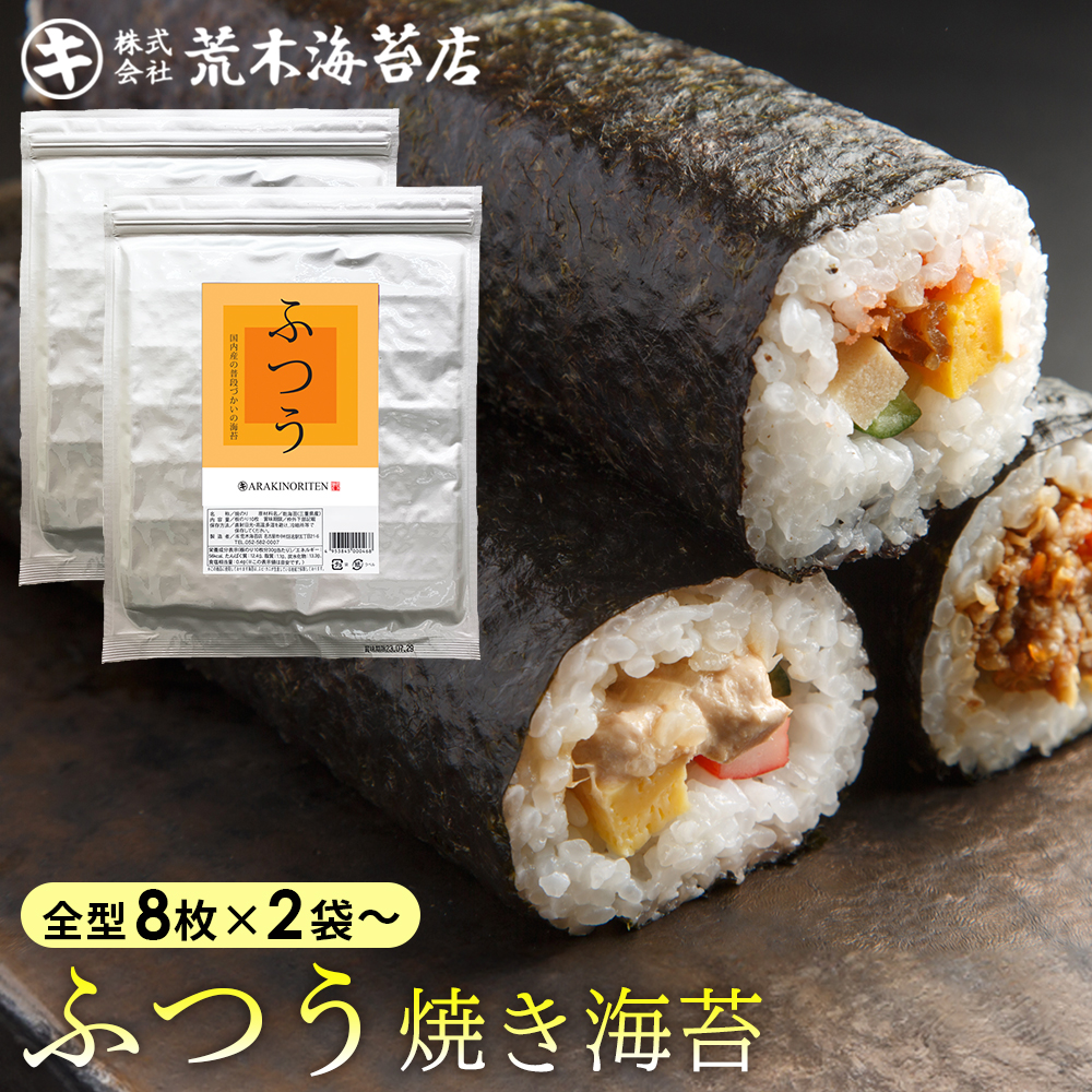 海苔 無添加 ふつうにおいしい焼きのり 8枚入り2袋セット 焼き海苔 おにぎりのり 手巻き寿司 フードロス焼のり 無添加 送料無料 ポイント利用
