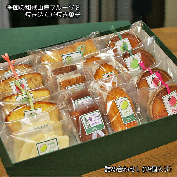 和歌山産のフルーツを焼き込んだ焼き菓子の詰め合わせ。 マドレーヌ、パウンドケーキ、フィナンシェ、クッキー、フロランタン、アーモンド風味のカップケーキなど その季節の全種類(10種類前後)が入り、ほぼオールスターのラインナップで、全19個入り。 いろんな種類の焼き菓子を一度にお楽しみいただける、もらってうれしいギフトです。 歌山各地の農家さんから直接分けてもらう果物、紀州うめたまご、みかんの花の蜂蜜、カルピスバター等 素材にこだわり、ベーキングパウダー以外の添加物不使用の焼き菓子ですので、 お子様からお年寄りの方まで、安心しておいしく召し上がっていただけます。 旬のフルーツを焼き込んでいますので、フルーツは季節とともにその時どきで変わります。 どんなフルーツの焼き菓子が入っているかは、お楽しみに。 その時々の季節のフルーツのお菓子が入っているので、何度贈っても喜ばれるギフトです。 のし、包装も対応させていただきます。包装紙はシチュエーションに合わせてお選びください。 箱の大きさは、30cm×20cm×7cm。 ●同梱で、2箱ご注文の際は、 当店カフェオリジナルのワンタッチドリップコーヒー3杯分と ティーバッグの紅茶3杯分プレゼント! 3箱以上同梱でのご注文時は、 さらに1箱毎に焼き菓子3個プレゼント!! ぜひご自分でもお味見ください。 2箱同梱なら、コーヒーと紅茶プレゼント 3箱同梱なら、コーヒーと紅茶と焼き菓子3個プレゼント 4箱同梱なら、コーヒーと紅茶と焼き菓子6個プレゼント : 他の送料込の焼き菓子ギフトとの組み合わせでもOK! *送り先が異なる場合は、対象外ですので、あらかじめご了承願います。 【お誕生日】や【記念日】に【親しい知人に贈る】時や【お世話になった方へ】【親しい友人へ】【お礼に贈る】【お祝いに贈る】等、 色々なシチュエーション【お使い物】でのご利用お待ちしております。 こだわったギフトを贈りたい【お歳暮】【お中元】にオススメ。 直接先方様にお届けもできます。 【おじいさん・おばあさんに贈る】【ご両親に贈る】【上司に贈る】【恋人に贈る】時など、少人数には適当な大きさでオススメです。 【引越祝】【新築祝】【開業・開店祝】【卒業祝】【入学祝】【昇進祝】【就職祝】【退職祝】など色んなお祝いにも最適。 帰省先への【お土産】、知人宅への【手土産】にいかがですか?訪問先や帰省先に直接送れば、手ぶらで行けて便利! コンペやパーティーの【景品】【賞品】にもオススメ。 素材重視で、甘さ控えめなので、【お見舞い】にも喜ばれます。 【成人式のお祝】【父の日】【母の日】【敬老の日】のプレゼントや、大人の方への【バースデー】【バレンタイン】【ホワイトデー】などのプレゼントにも。 【結婚祝】【引き菓子】【出産祝】【内祝】などおめでたい時はもちろん【法事】【お供え】などの仏事にも対応させていただきます。 |
